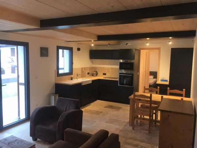 Rez-de-jardin de 50m2 avec grande terrasse. Une chambre lit 160cm, un coin montagne avec 2 lits superposés.